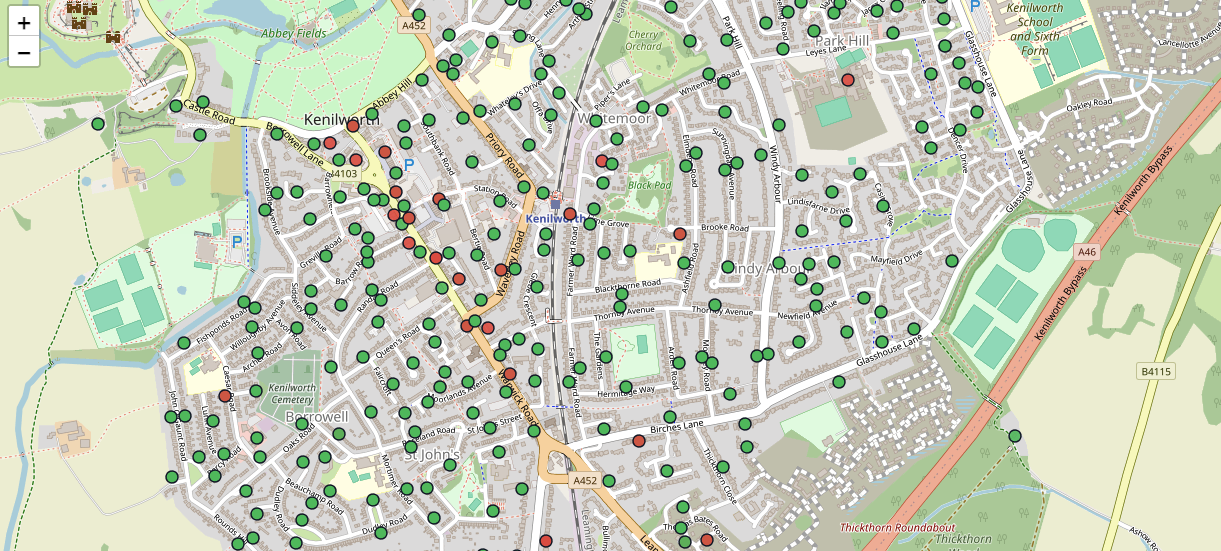 As shown below, the map displays each sale as a dot, green for Category A and red for Category B. As a reminder, an explanation of this can be found here.